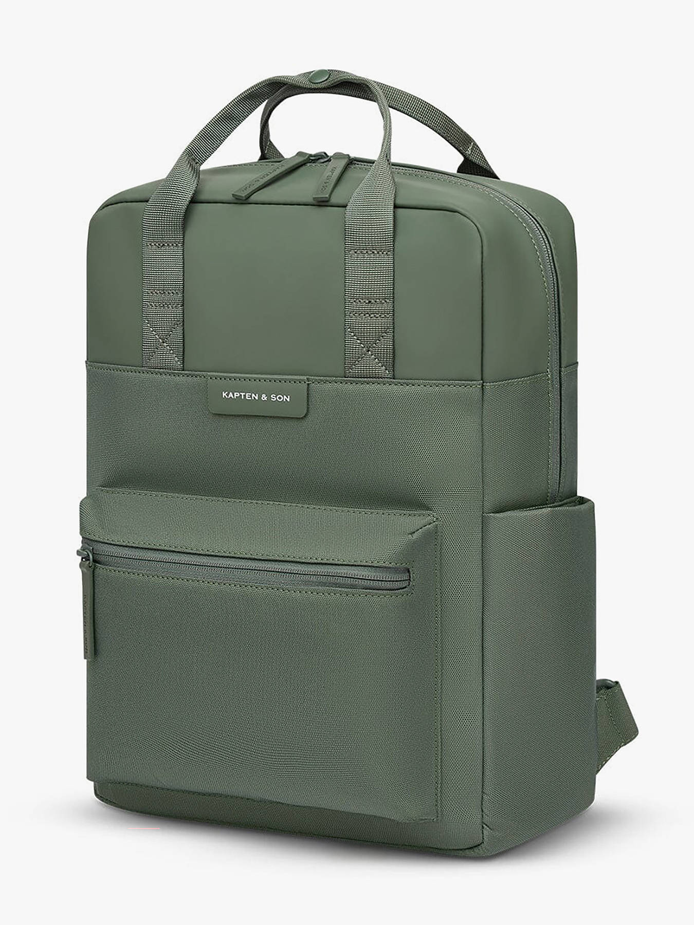 The KAPTEN AND SON backpack in recycled P.E.T combines modern design, durability, and practical functionality. Its zip closure secures your belongings, while the front pocket and two side pockets provide quick access to essentials. Adjustable shoulder straps ensure comfortable back wear, and the top handle allows hand carrying as needed. Inside, one slip pocket, one zip pocket, and a laptop compartment for devices up to 15’’ protect your digital devices and keep documents organized. This backpack can hold A4 folders, notebooks, and binders of various sizes, making it perfect for work, school, or urban commuting. Compact, lightweight, and durable, it blends practicality with contemporary style, making this backpack an essential accessory for organized and stylish daily use.