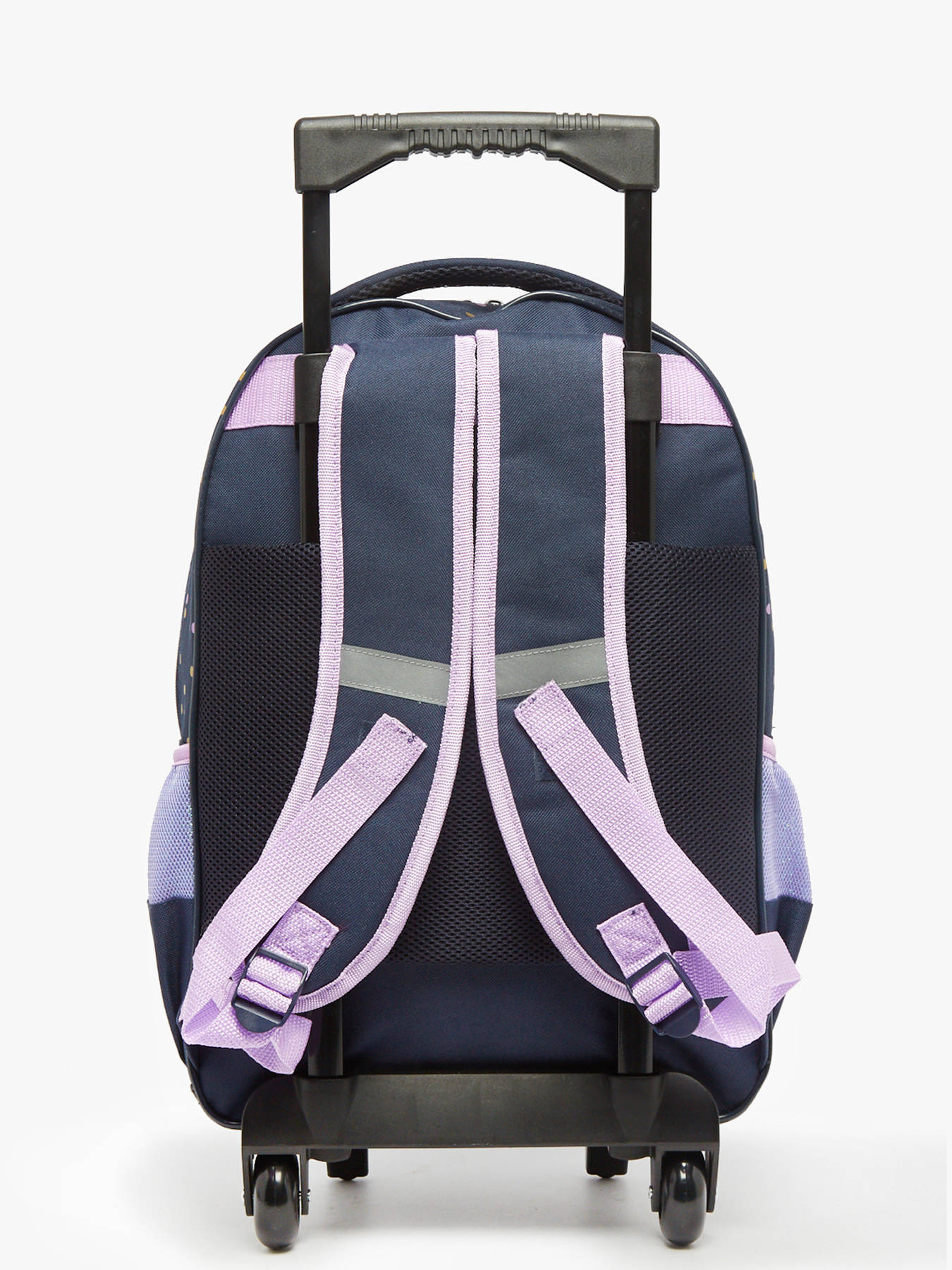 57 cm - 45 liters - 1.19 kg ~ The MILKY KISS rolling backpack is specially designed for girls aged 7 to 10 years, combining practicality and comfort. Made from durable polyester, it features one main zippered compartment and two internal compartments for optimal organization. It also includes a front pocket and two side pockets, perfect for everyday small items. Reflective strips ensure better visibility and safety during travel. Adjustable shoulder straps provide a personalized fit and comfortable carrying on the back. The telescopic handle allows easy hand transport thanks to integrated wheels, ideal for relieving children's backs. This backpack can hold folders, notebooks, and binders up to A4 size, perfectly meeting school needs. Functional, practical, and stylish, it supports young students with lightness and safety.