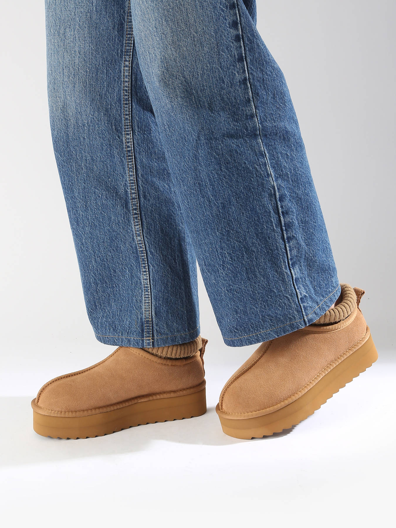 COLORS OF CALIFORNIA sabot stands out for its originality and comfort with a high sole and built-in sock made of soft ribbed fabric. Fully crafted from suede, these clogs are not only super stylish but also versatile for any winter outfit, both day and night. For a perfect look, pair them with oversized coats, maxi pullovers, and carrot pants. The clean and contemporary lines of this model add a modern touch to your wardrobe. Whether you're in the city or out and about, these clogs will keep you warm in style.