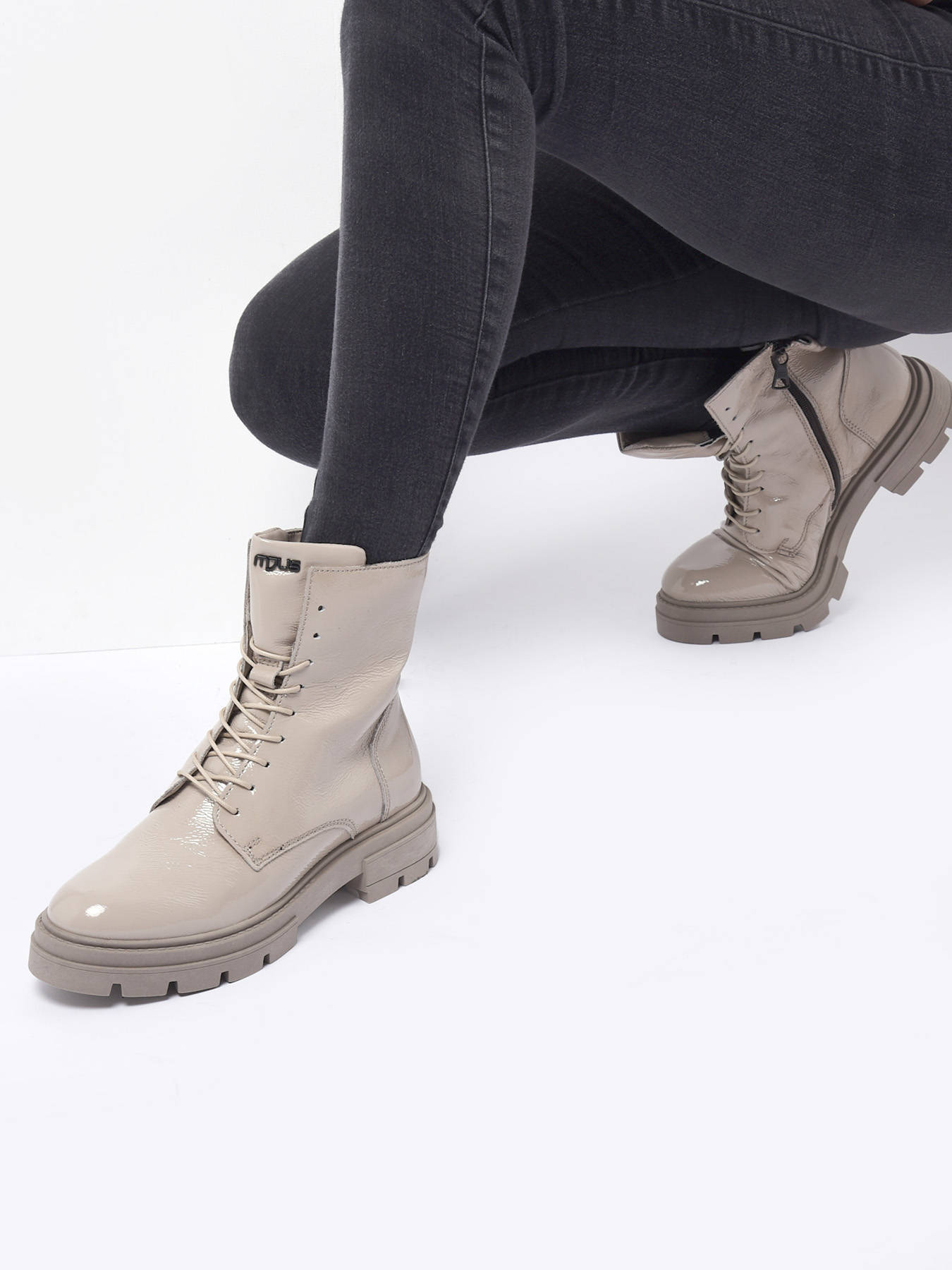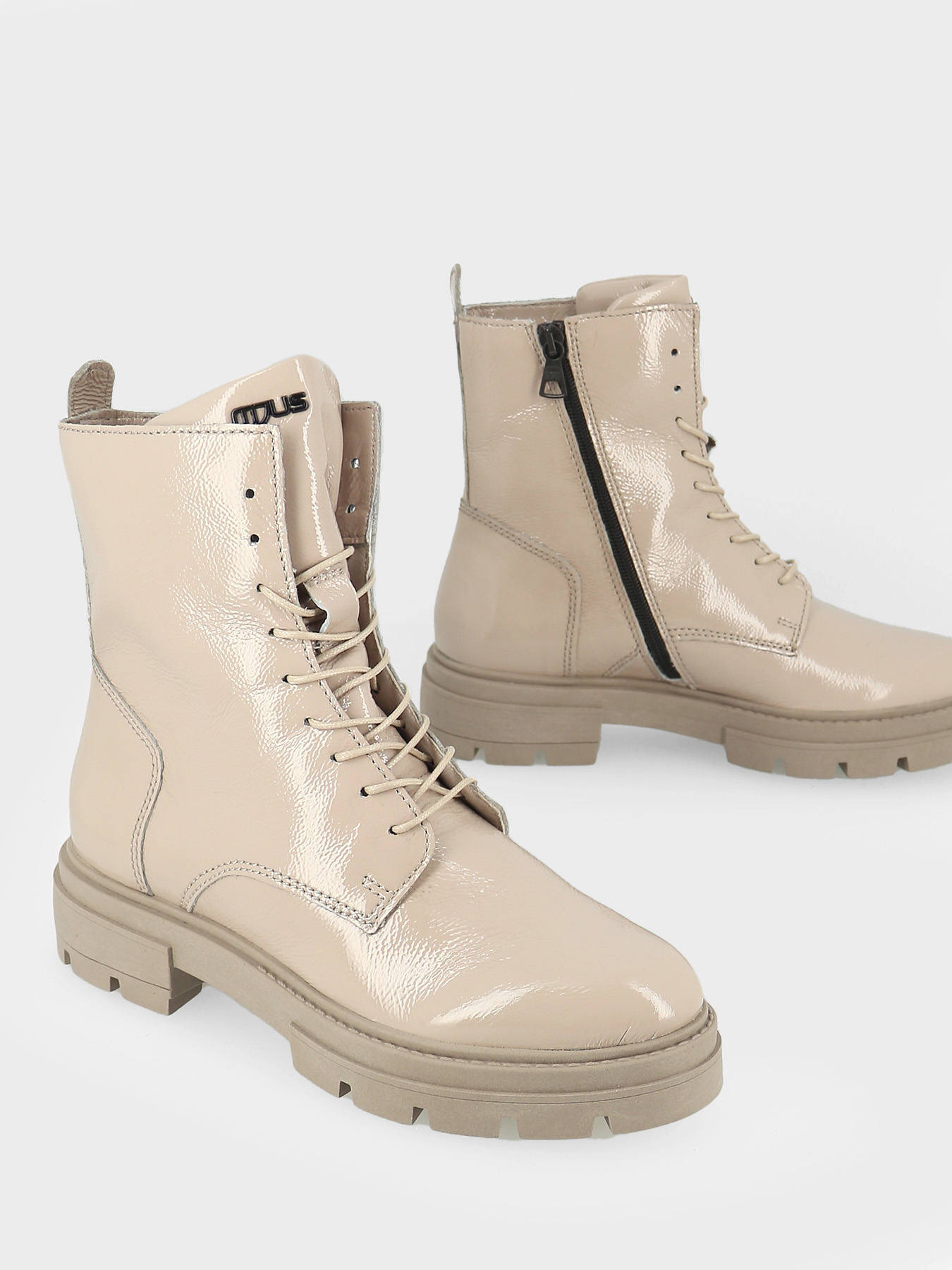 This season, Mjus offers you this pair of boots made from leather. You will love the patent effect and the ranger look. These boots have a 15 cm shaft and a small 4 cm heel for real comfort all day long. These Mjus boots are lined in textile and have a zip and lace-up closure. Pair these women's boots with a trendy outfit and you'll be on top of your game.