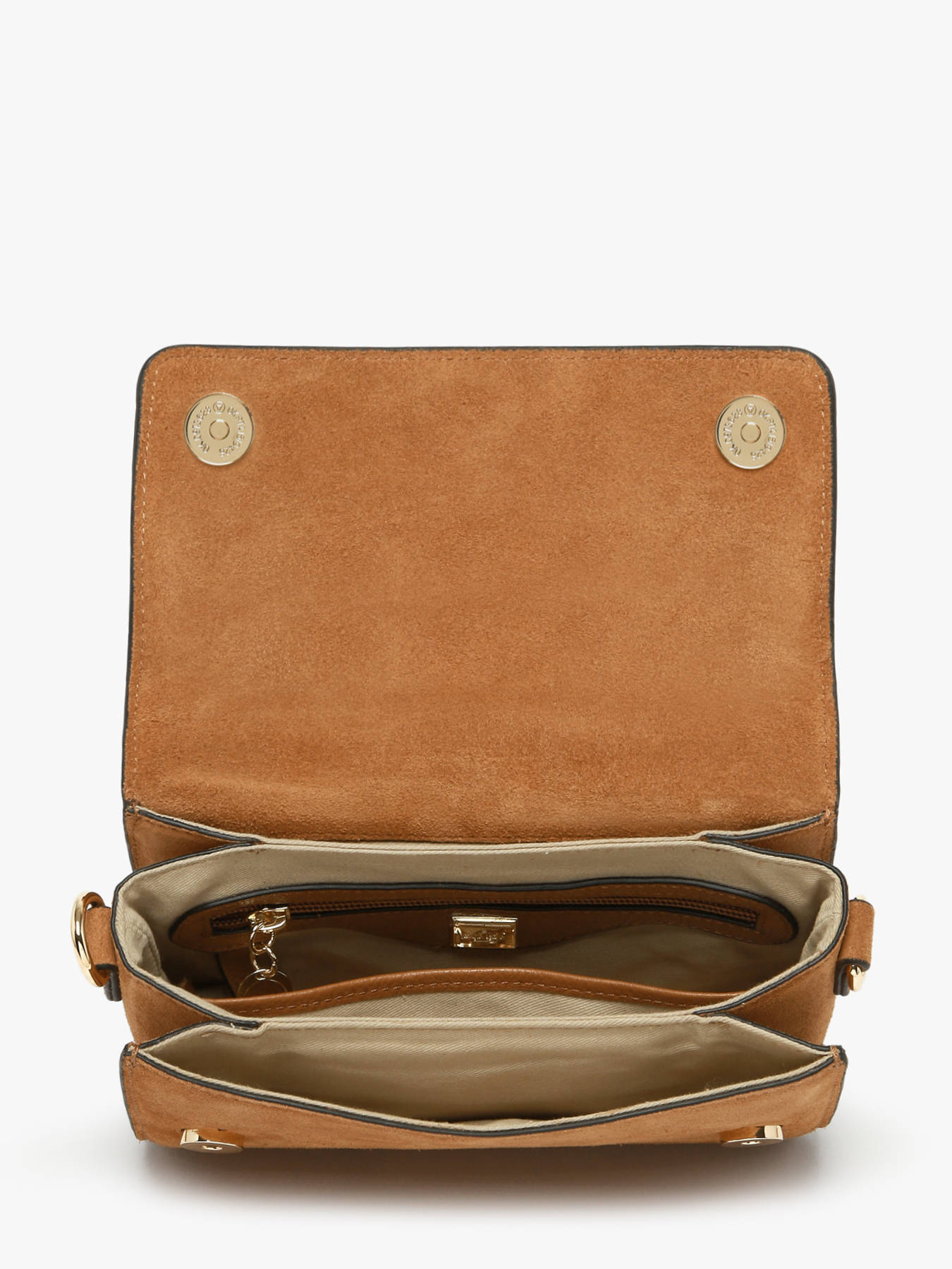 The ETRIER crossbody bag from the ALTESSE SUEDE line is available in its medium size, model S. This new version of our iconic line is crafted from soft, warm suede leather, offering an elegant and authentic look. The back of the bag is made of grained leather for enhanced durability in everyday use. Featuring a back pocket and a magnetic flap enhanced by the signature gold-tone Etrier jewel, it can be carried by hand with its small handle or worn over the shoulder thanks to its adjustable and removable shoulder strap.