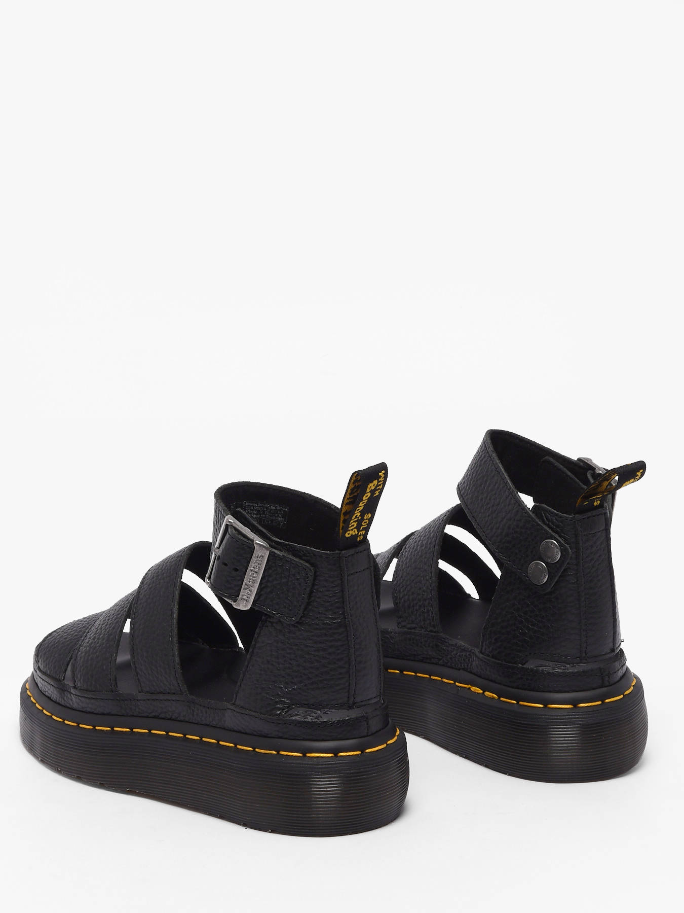 Les sandales Clarissa II Quad de Dr Martens en cuir Milled Nappa noir allient élégance et audace pour un style affirmé cet été. Leur cuir doux et souple au fini grainé sublime les quatre brides emblématiques, dont une à boucle réglable à la cheville, et révèle tout l’ADN rebelle de Dr Martens. La semelle compensée ultra-haute offre confort et démarche assurée, tandis que chaque détail, des coutures robustes à la finition soignée, affirme un look résolument moderne et tendance. Polyvalentes et irrésistibles, ces sandales spartiates deviennent la pièce incontournable pour traverser la saison avec caractère, de la ville à la plage, et afficher un style unique, affirmé et audacieux.