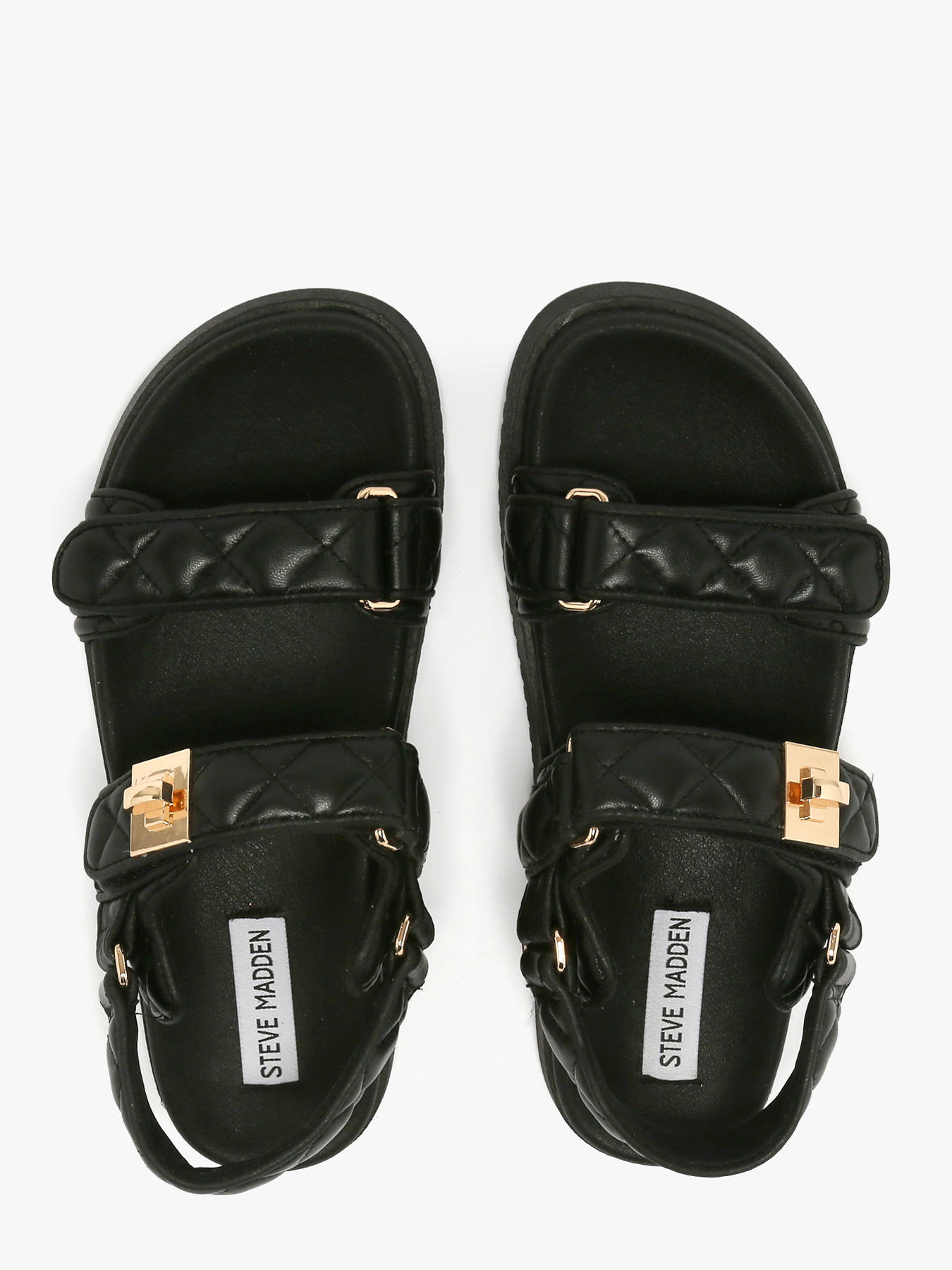 Les sandales Mona-Q de Steve Madden combinent style contemporain et confort au quotidien avec élégance. Inspirée de la sandale classique à trois lanières, la Mona-Q dispose d’une assise plantaire moulée et d’une semelle plate pour un confort optimal tout au long de la journée. Le dessus en cuir noir matelassé, la doublure et la semelle intérieure en synthétique, ainsi que la fermeture velcro assurent un maintien parfait et une facilité d’enfilage. Rehaussée d’accessoires substantiels en ton or, cette sandale apporte une touche chic et sophistiquée à toutes vos tenues. Steve Madden incarne un esprit audacieux, dynamique et résolument individuel, qui se reflète dans cette création moderne et versatile.