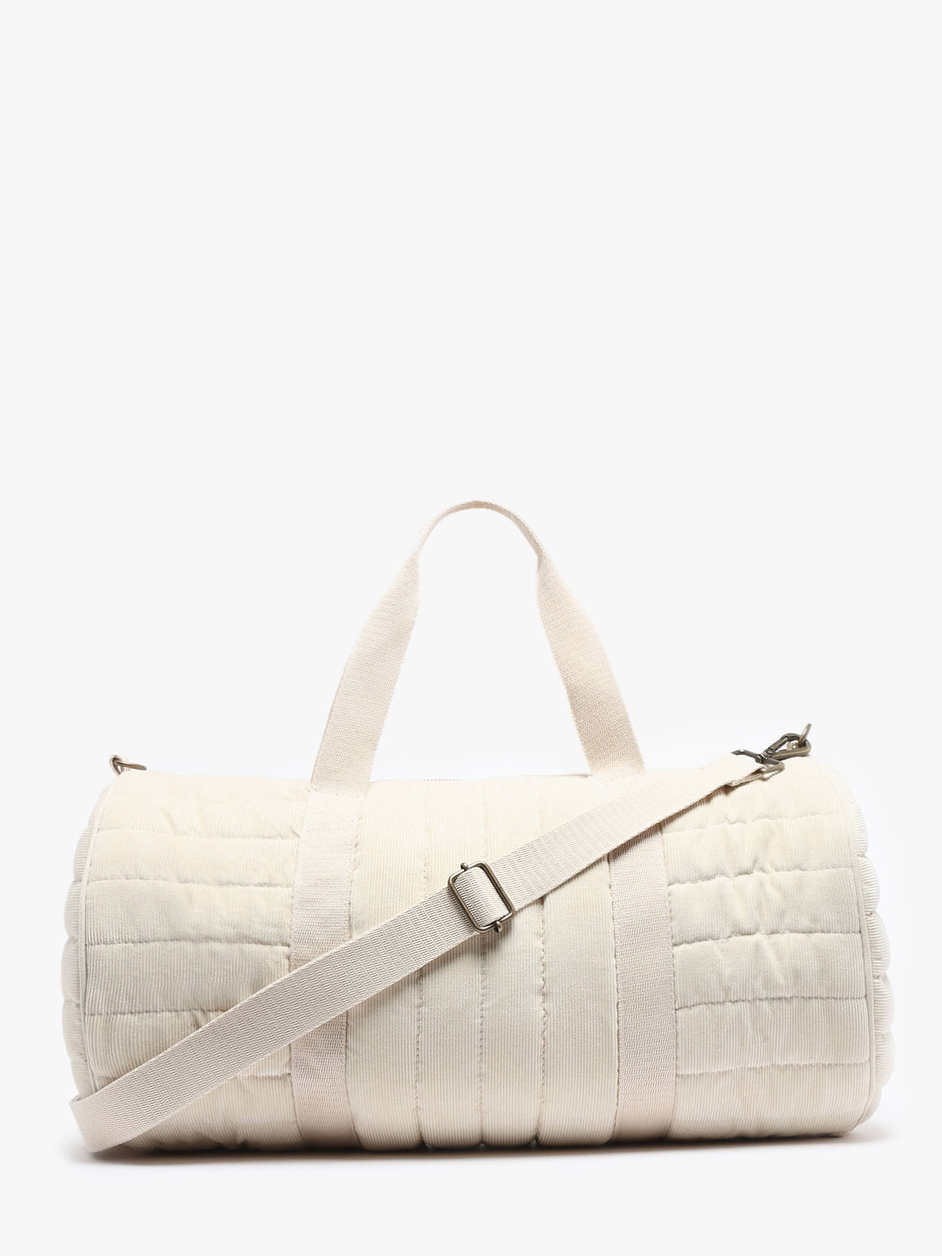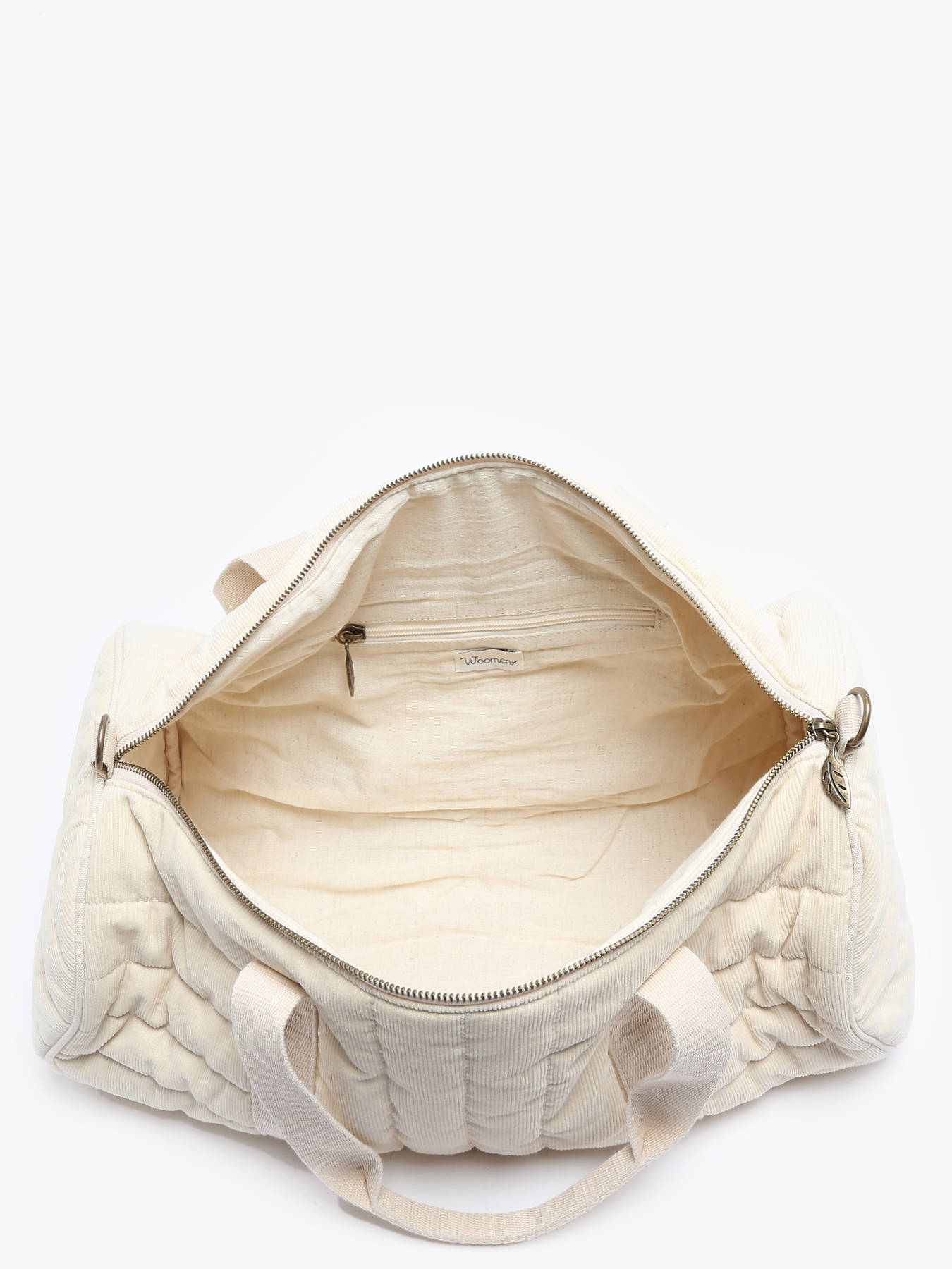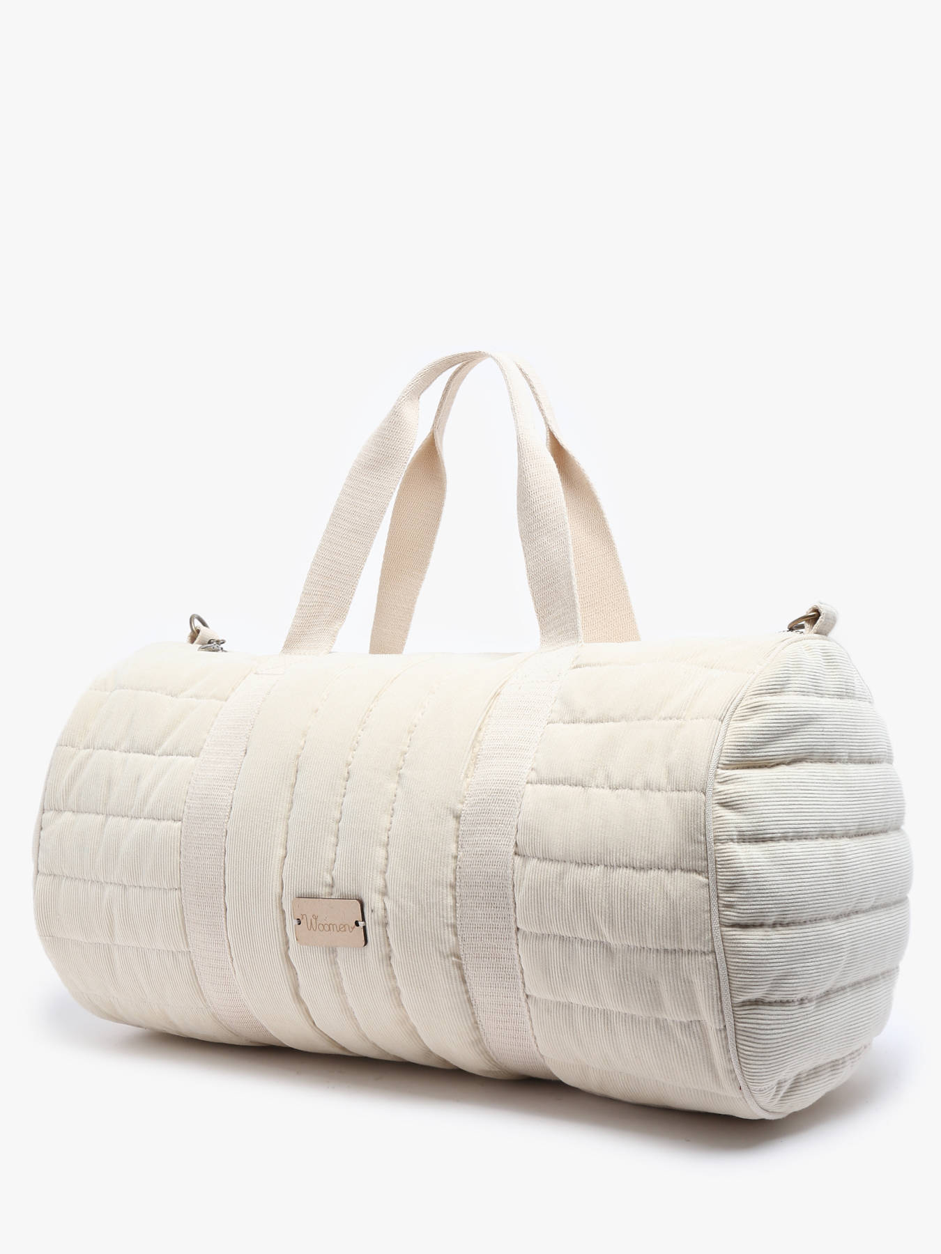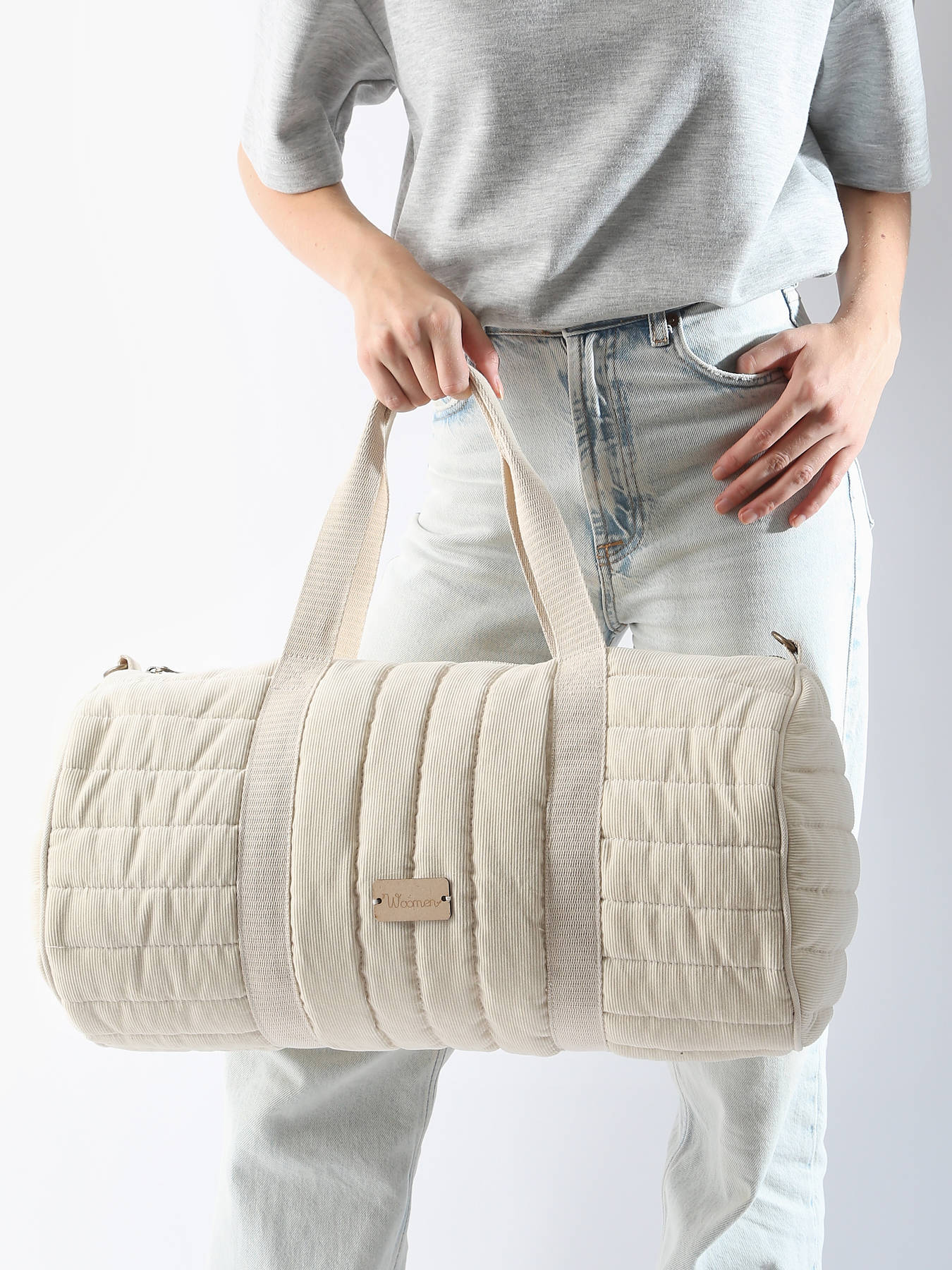 This handbag from WOOMEN's IXORA line is crafted from organic cotton with quilted corduroy, blending cozy comfort with style. This duffle-style model is perfect for weekends or daily use and can be carried by hand, over the shoulder, or crossbody thanks to its adjustable, removable strap. It closes with a zippered closure and features a zippered pocket and a single compartment inside for practical organization.