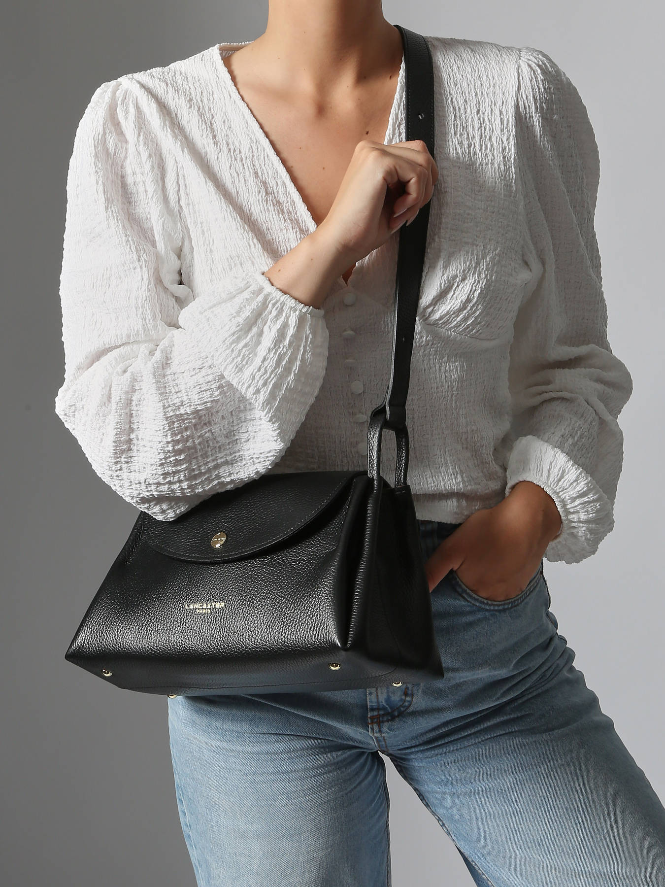 This LANCASTER crossbody bag in genuine cowhide leather offers both elegance and functionality. Its compact shape and magnetic flap closure lend it a refined look while ensuring quick and secure access to your belongings. On the outside, two discreet pockets—one at the front and one at the back—keep your essentials within easy reach. The adjustable shoulder strap ensures a comfortable fit, whether worn crossbody or on the shoulder. Inside, a single main compartment is completed with one slip pocket and one zip pocket, allowing for smart organization of your daily items. With its sleek silhouette and practical design, this bag is the perfect companion for busy days or city strolls. A must-have accessory for the modern woman.