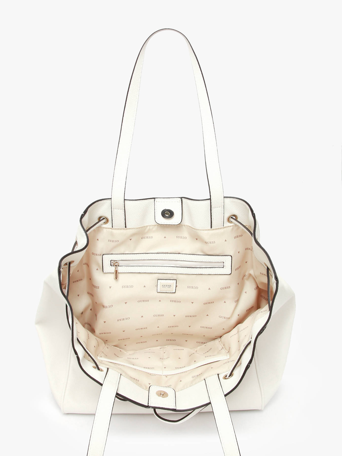 The CALEBRA shoulder bag by Guess, crafted from coated canvas, perfectly combines elegance and practicality. Its magnetic closure ensures quick and secure access to your belongings, while the 27 cm handle provides comfortable shoulder wear. Inside, the bag features a spacious main compartment, complemented by two slip pockets and one zip pocket, allowing organized storage for your daily essentials. Compact yet stylish, the CALEBRA stands out with its sleek, modern design, ideal for adding a chic touch to any outfit, whether for city outings or professional meetings. Lightweight and functional, it blends practicality with contemporary flair, making it a versatile and eye-catching accessory.