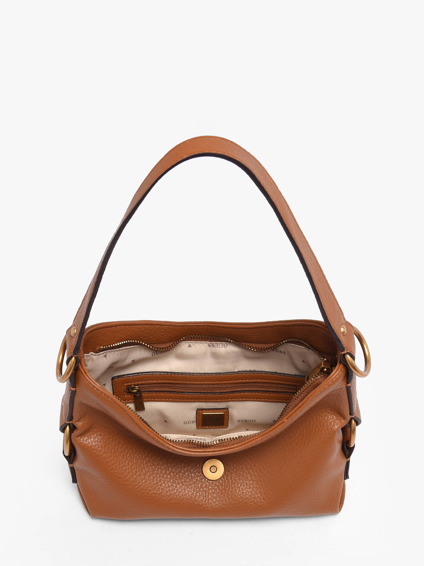 The CAMDEN GUESS shoulder bag combines modern elegance with everyday practicality. Made from high-quality PU, it features a smooth, durable, and easy-to-care-for texture. Its zip closure keeps your belongings secure while allowing quick access to essentials. The thoughtfully designed interior includes one main compartment, a zip pocket, and six card slots, making it easy to organize your items with style. The shoulder strap provides comfortable wear, offering optimal freedom of movement while adding a chic touch to any outfit. Compact and structured, this bag suits both urban looks and more sophisticated ensembles, perfect for daily use or an elegant outing. Every detail reflects GUESS’s attention to quality, making this bag a functional yet trendy accessory, ideal for those seeking practicality and style without compromise.