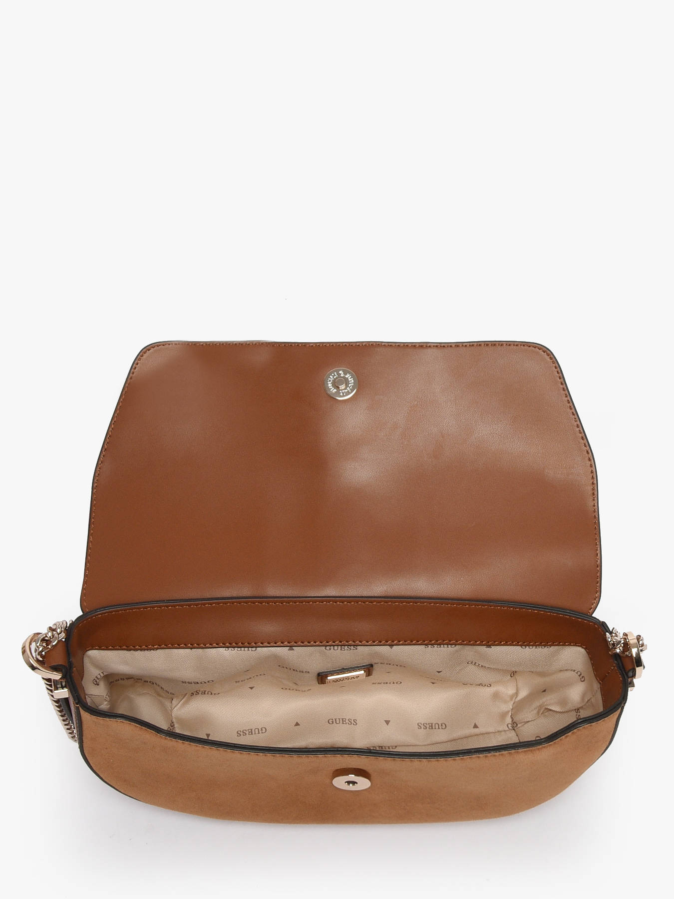 The ERENIA shoulder bag by GUESS, crafted from premium cowhide leather, combines elegance and practicality for everyday use. Its flap with magnetic closure ensures optimal security while allowing easy access to your belongings. Conveniently, it features a back pocket for quick access to small essentials. The adjustable strap provides comfortable crossbody wear, perfect for stylishly accompanying your busy days. Inside, a single compartment and three card slots offer simple and efficient organization of your essentials. The cowhide leather gives this bag natural durability and elegance, making the ERENIA an essential accessory to complement your casual or sophisticated looks with a refined touch.