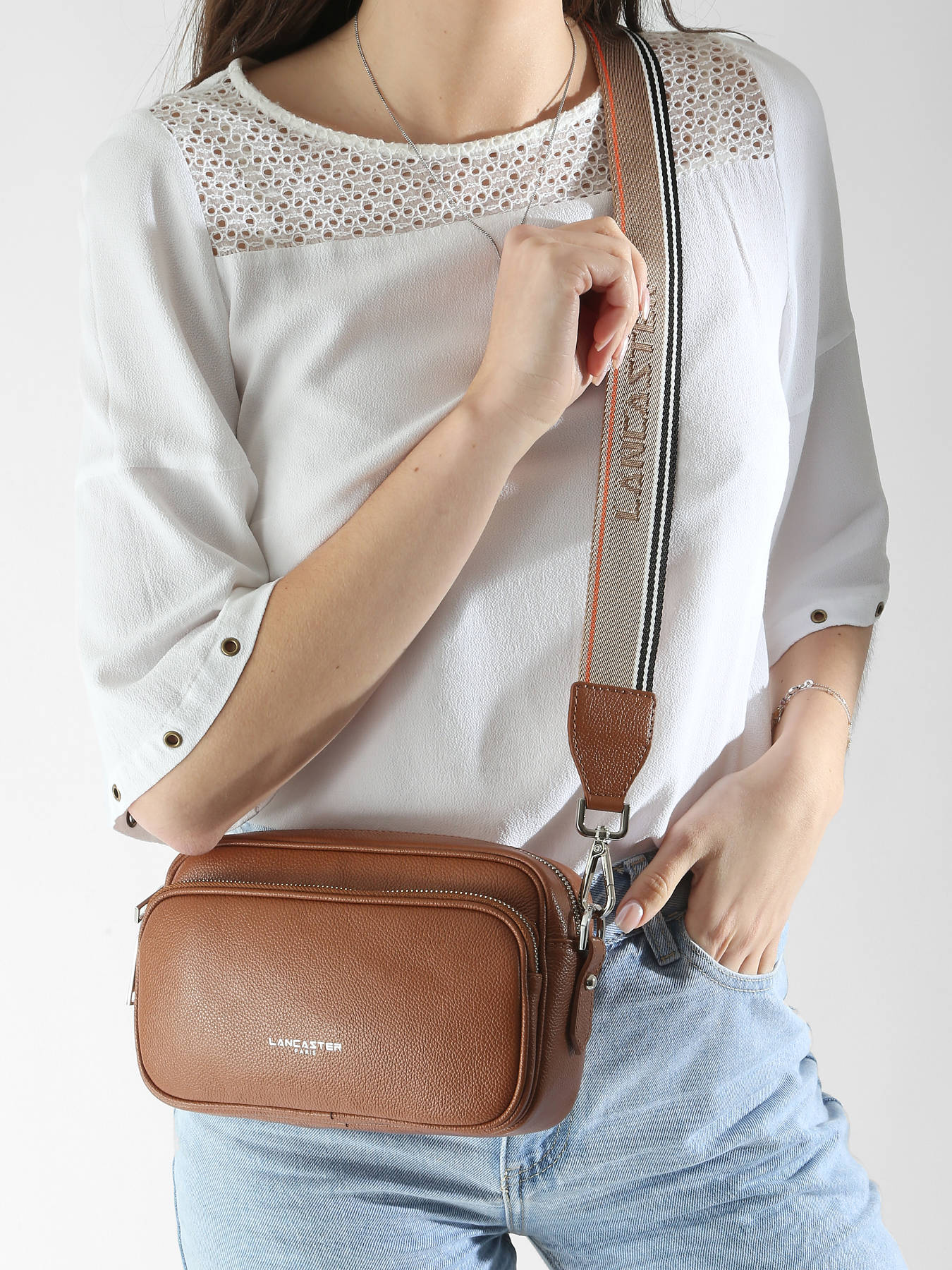 The LANCASTER crossbody bag, made of cowhide leather, perfectly combines elegance and practicality. Its adjustable and removable strap offers comfortable and personalized wear, whether on the shoulder or carried by hand. The exterior of the bag features a front pocket with a zip closure, perfect for securely storing your small daily essentials. Inside, it consists of a spacious compartment and a zippered pocket, allowing for efficient organization of your belongings. This stylish and functional model adapts to your needs and perfectly complements your outfits, whether for a casual outing or a workday. Practical, lightweight, and elegant, it will quickly become a must-have in your wardrobe.