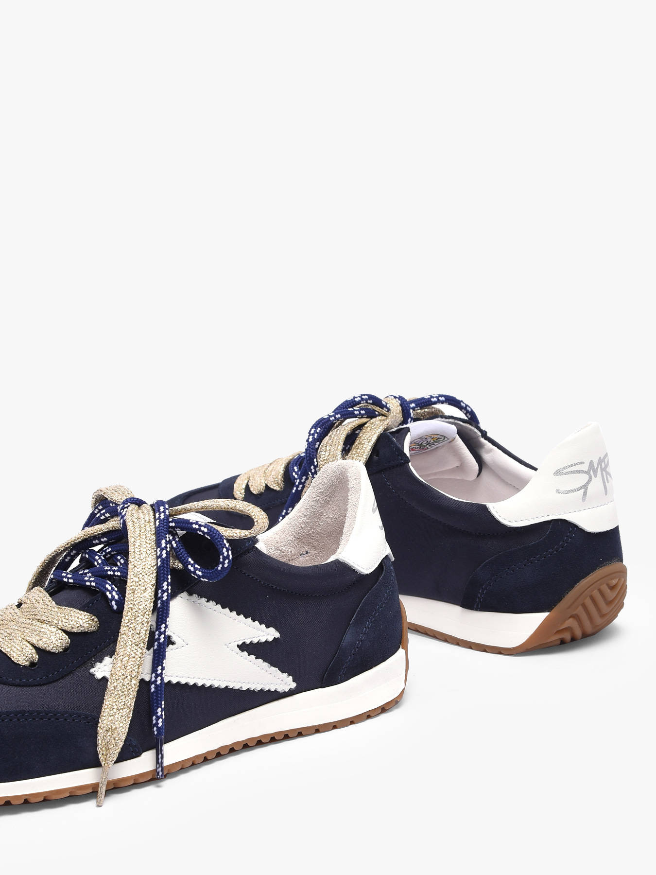 Les baskets June de Semerdjian adoptent l’allure rétro-running pour un look urbain chic au quotidien. Leur tige en tissu et croûte bleu marine assure confort, légèreté et robustesse, tandis que l’éclair blanc signature apporte contraste et dynamisme à chaque pas. Livrées avec deux paires de lacets, elles permettent de varier les styles et de personnaliser votre look selon vos envies. Polyvalentes et stylées, ces sneakers se portent facilement en ville ou lors de vos sorties, offrant confort, maintien et un design original qui attire tous les regards. La June incarne parfaitement l’esprit contemporain et sportif propre à Semerdjian.