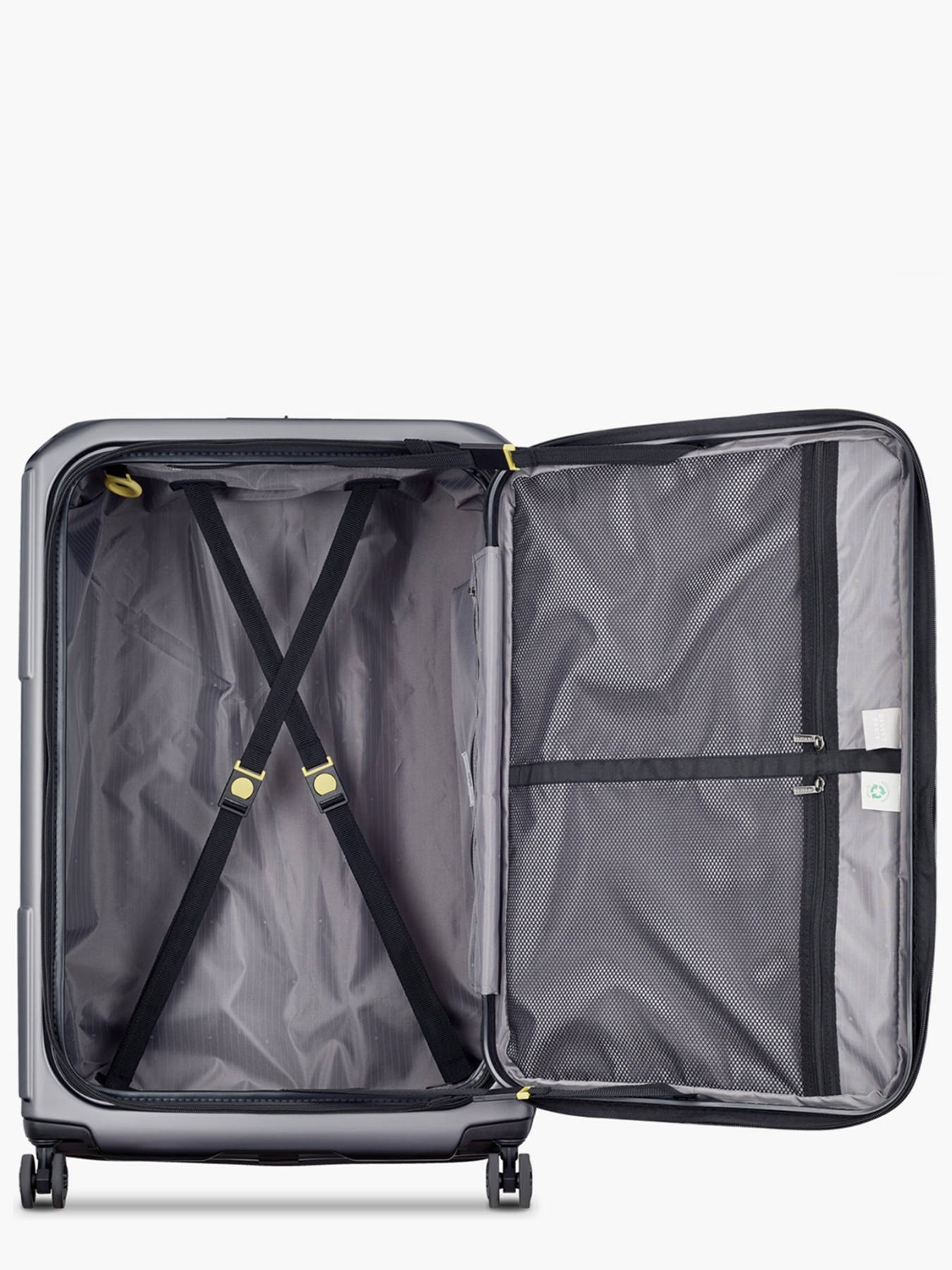 La valise Delsey Securitime Zip 77 cm est un modèle spacieux et innovant, conçu pour les longs voyages et les besoins de grande capacité. Pesant 5,13 kg et mesurant 77 x 50 x 32 / 35 cm, elle offre un impressionnant volume de 116L, idéal pour transporter tous vos effets personnels en toute sérénité. Fabriquée en polycarbonate 100% et intégrant des matériaux recyclés, elle allie résistance et engagement écologique. Son système de fermeture SECURITECH®, breveté par DELSEY, est trois fois plus résistant à l'intrusion qu'un zip classique, complété par une serrure TSA pour un verrouillage sécurisé. Grâce à ses 4 doubles-roues silencieuses et multidirectionnelles, la maniabilité est optimale. L’ouverture frontale facilite l'accès à un intérieur bien organisé, avec un compartiment profond, des poches en filet et des sangles de maintien. La doublure en rPET, entièrement recyclée, est détachable et lavable en machine à 60°C pour une hygiène parfaite.